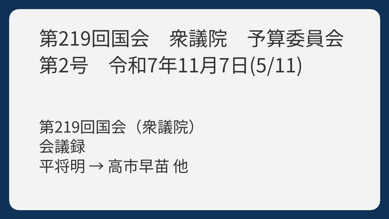 第219回国会 衆議院 予算委員会 第2号 令和7年11月7日(5/11)
