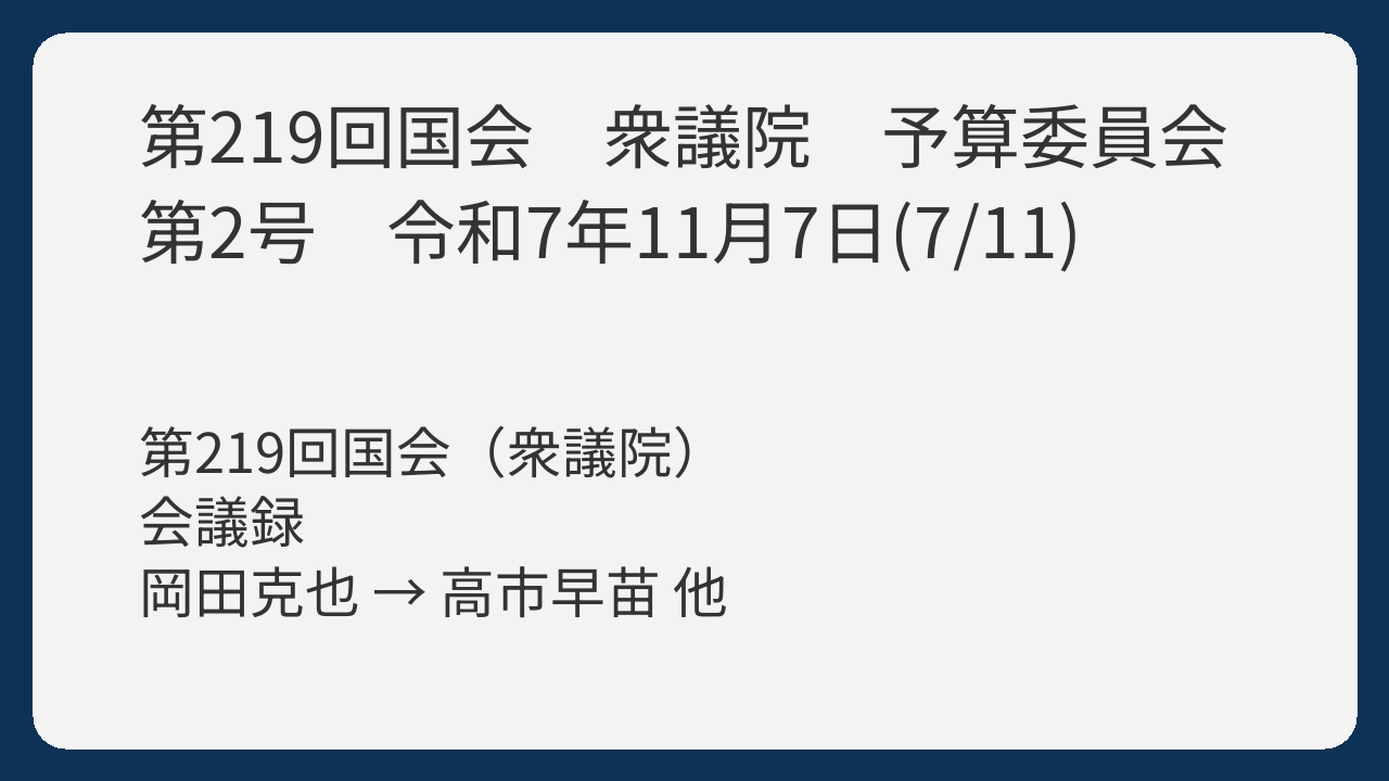 第219回国会 衆議院 予算委員会 第2号 令和7年11月7日(7/11)