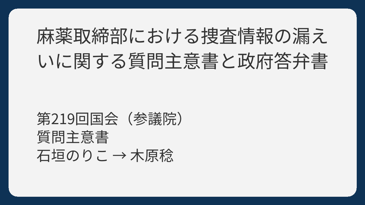 麻薬取締部の捜査情報漏えい問題についてのやりとり