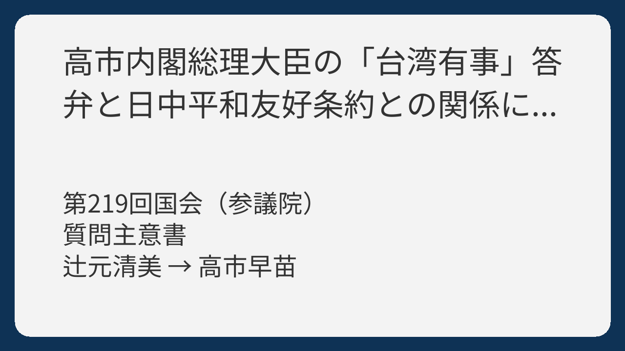 高市内閣総理大臣の「台湾有事」答弁と日中平和友好条約との関係に関する質問主意書