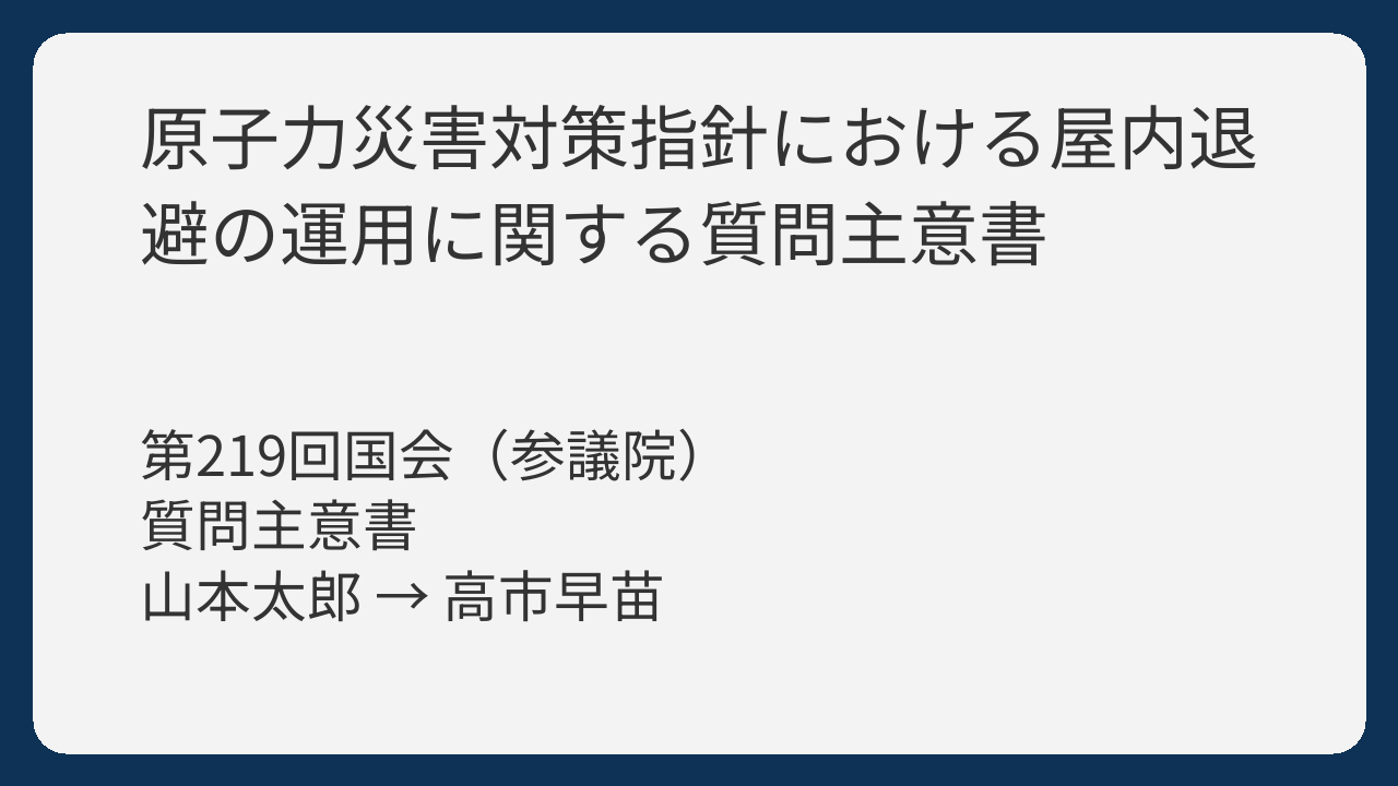 本議論は、原子力災害対策指針の運用や屋内退避の現場レベルでの適用、さらに情報共有の透明性や役割分担の明確化、民間事業者への周知方法など、具体的かつ現場に直結する論点が含まれており、政策運営上重要な課題をカバーしています。質問は詳細かつ指摘事項が明確で、科学的・法的根拠にも基づいています。一方で、答弁は一部に形式的な説明が多く、事務的・紋切型といえる側面があり、さらなる深掘りや具体的対策の提示についてはやや不足していると評価します。議会論戦としてはレベルが高いものの、政府側答弁にやや自主性や前向きな提案が少ないため、最上級評価は避けました。