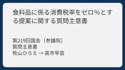 3行解説POINT食料品の消費税を0%にする提案について、国会議員牧山ひろえが政府に質問し、政府の考えを聞きました。質問者は牧山ひろえで、生活が苦しい人を助けるため食料品の消費税ゼロの効果や、現金の給付との違いについて詳しく質問しました。内...