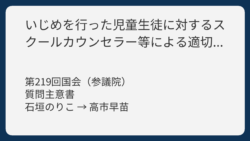 人権・差別 いじめを行った児童生徒に対するスクールカウンセラー等による適切な支援の必要性に関する質問主意書