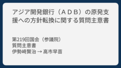 3行解説POINT福島第一原子力発電所の関連法規の一部を適用しない理由や、制度改正による手続の変化について政府とやりとりした内容です。質問者は参議院議員の山本太郎で、政令改正で一部法律が適用されなくなった理由とその影響について質問しました。...