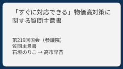 3行解説POINT八丈島で台風被害を受けた事業者をどう支援するかについて、山本太郎議員が政府に質問し、内閣総理大臣 高市早苗が答えました。山本太郎議員は、被災した事業者への二重ローン救済策や、返済不要の給付金の実施状況と政府の方針について尋...